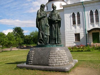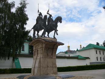 Перед стенами монастыря буквально на днях появился памятник святым Борису и Глебу, у нас видимо уже вошло в традицию лицезреть памятники сновья:)) (см. Звенигород) Торжественное открытие должно состояться в августе, а мы не гордые, нам и так сойдет:)